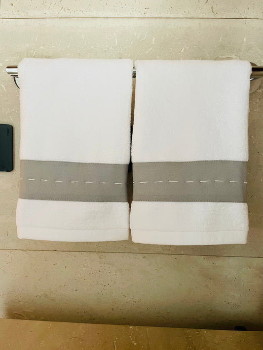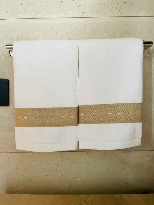 TOALLA VISITA PESPUNTE A MANO BEIGE